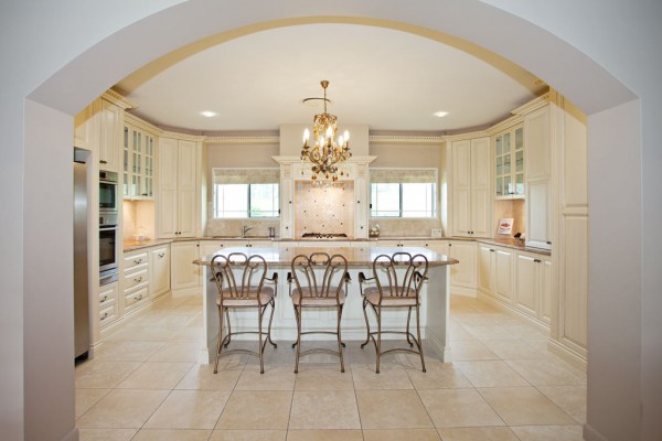 - The elegant kitchen includes Bosch appliances, spacious marble bench tops, and abundant storage