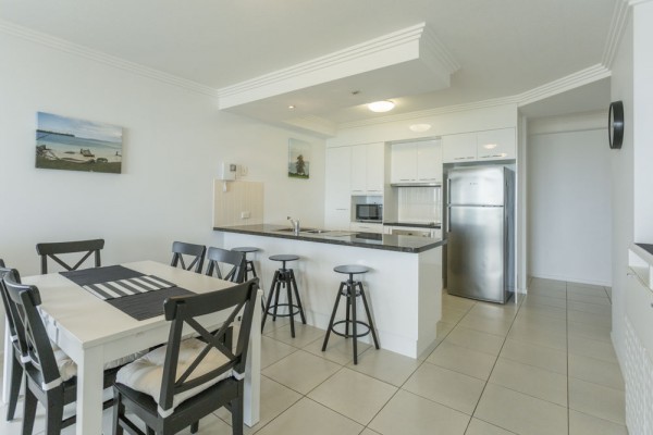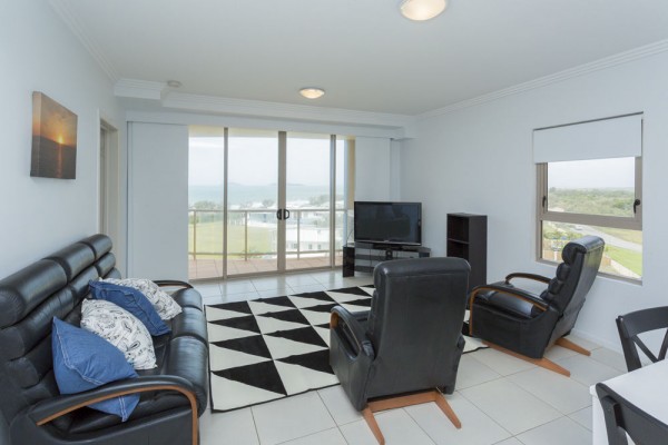 Located on the 6th floor of Captains Corner South, this fully furnished unit features beautiful ocean views of the Mackay Harbour.