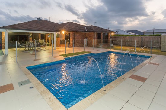 • 8.2m x 4.5m pool with water spout feature & roll away cover