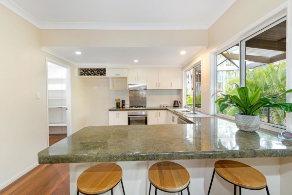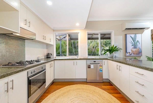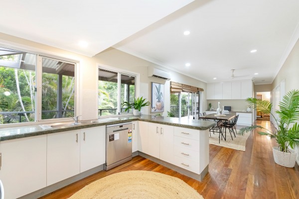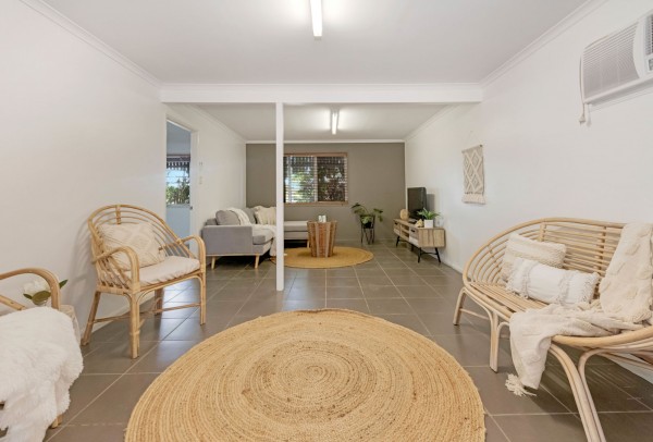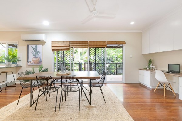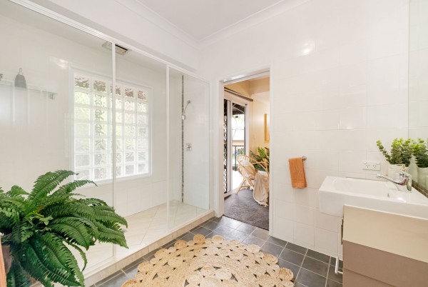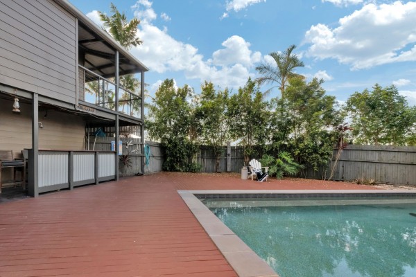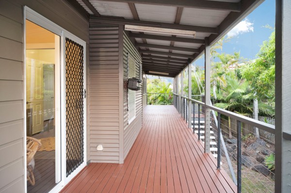 The rear deck looks out over the tropical gardens and pool area and offers a private, breezy summer sanctuary that will make life that little bit better in summer.