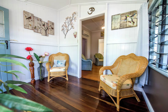 On entering the house you step into a sun room that has louvered windows and invites you to sit down and relax with a cup of tea and a book.