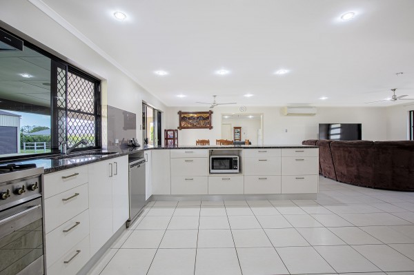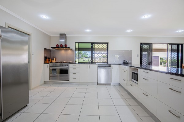 - The kitchen is complete with stone benchtops, gas cooktop and walk in pantry