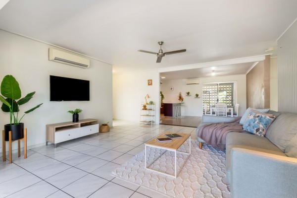 Sitting in the front sunroom will become your new favourite spot for reading a good book or quietly contemplating life with a cool drink. The open plan living & dining flow through to the kitchen and out to the first of the entertaining areas featuring a breeze block wall and bar. Party lights and flamingos will bring the tropical pool area to life providing a wonderful area for gatherings with family and friends.