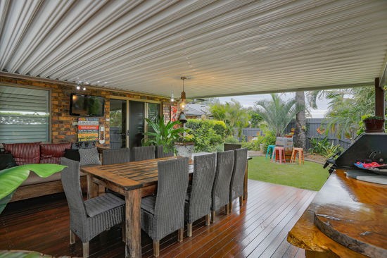 - Covered outdoor entertaining area with gorgeous timber decking with privacy screening through to the Inground swimming pool