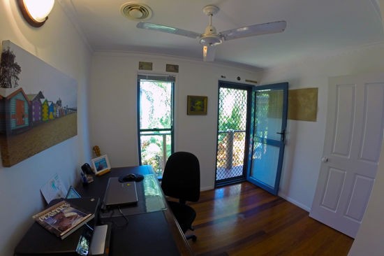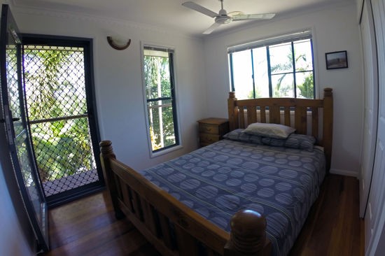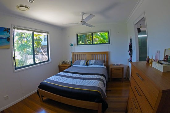 - Three bedrooms with built in robes and ceiling fans, two with external access