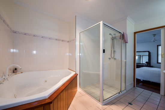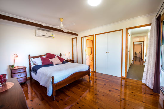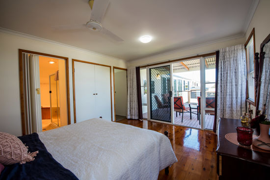 - Bedroom One -a spacious room with lovely timber floors , air conditioning ,ensuite with spa and opening to the rear deck with City Views .