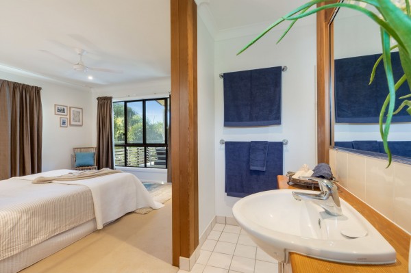 The four spacious bedrooms are on the top level of the home with the master suite boasting a large ensuite with double shower recess and a walk-through robe. An extra entertaining area opens out to a timber deck from which beach views are possible.