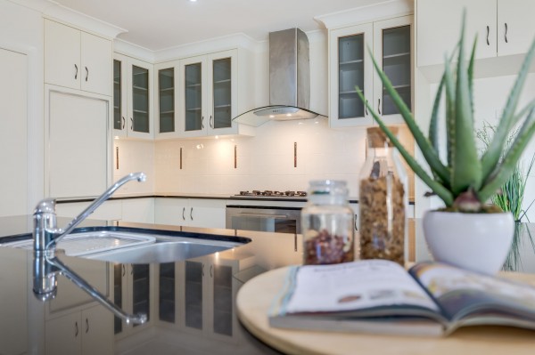 • Chef's kitchen with a large pantry, 900mm gas cooktop & oven with stone bench tops