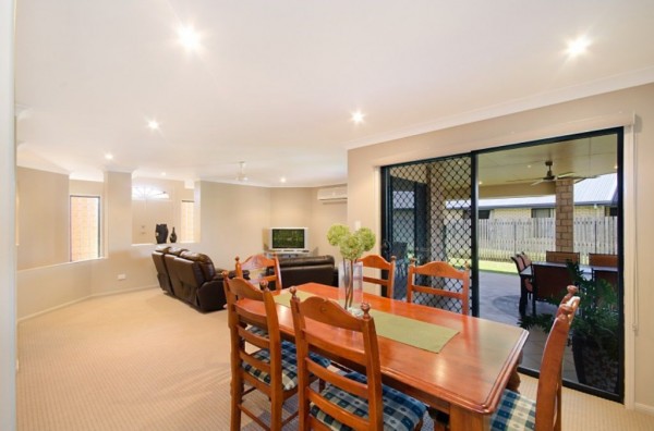 - Open plan tiled family room, kitchen plus 2nd dining area are at the rear of the home