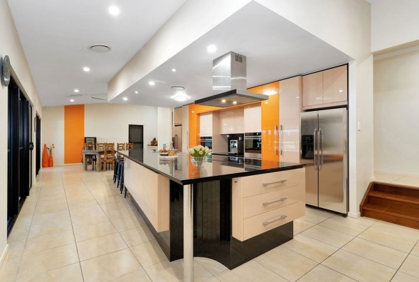 - Contemporary kitchen with quality appliances comprising of a Fisher & Paykel dishwasher, 2 ovens (one which can be a microwave as well) and an induction cooktop as well as additional features such as a granite bench and splashback, breakfast bar and separate fridge and freezer spaces.