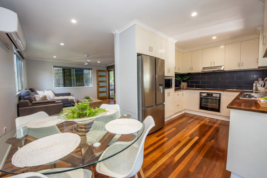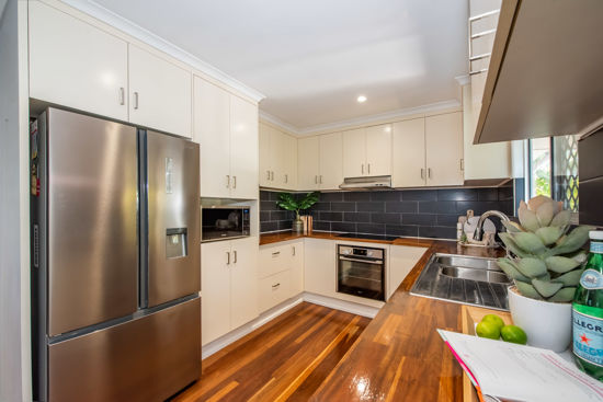 - Kitchen features timber benchtop, modern appliances and dishwasher