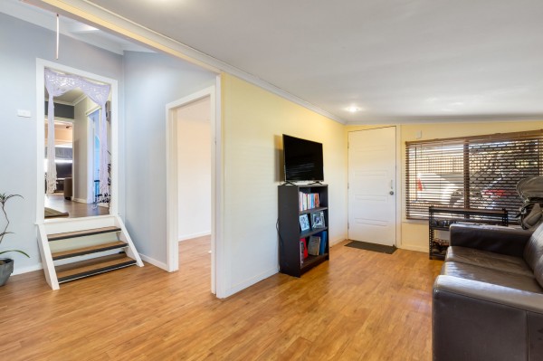 - When entering the home, you arrive at a beautiful living area with polished timber floorboards and split system a/c situated in the hub of the home for easy access to bedrooms and kitchen. Plus, an extra living area at the rear of the home near the patio