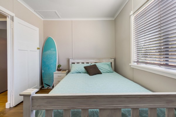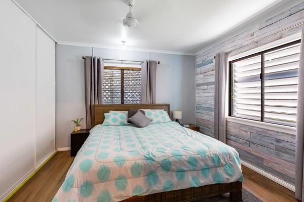 - Main bedroom features a huge built-in-cupboard and beautiful wooden feature wall