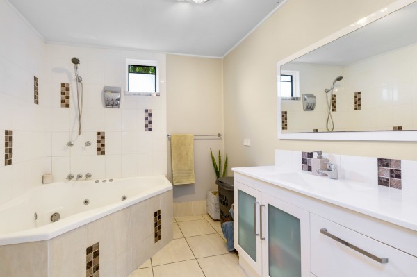 - Large family bathroom includes beautiful floor-to-ceiling tiles and spa, to relax and unwind