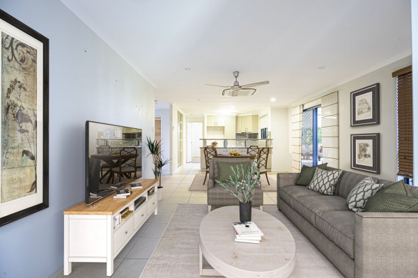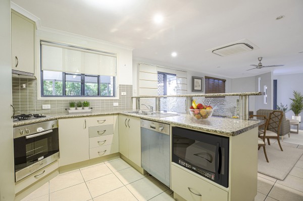 - Modern kitchen including dishwasher and pantry sits adjacent to the dining area and external entertaining