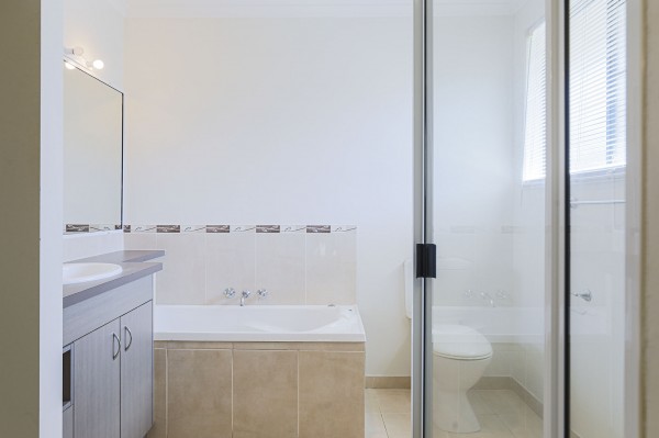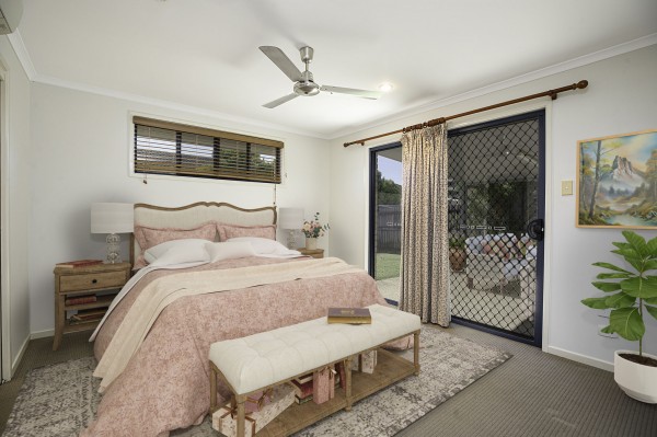 - Master bedroom containing an ensuite, walk through robe and sliding glass doors to the patio