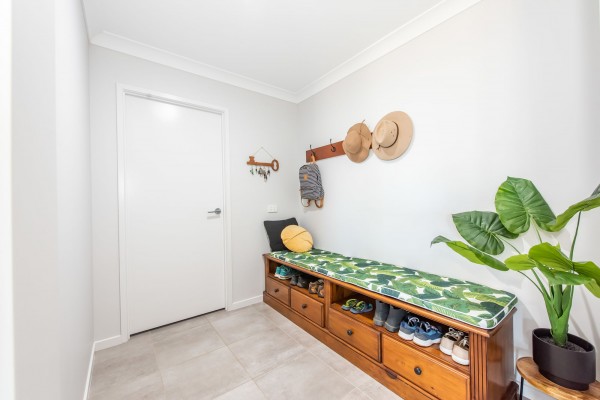 - There's a "mud room" as you step through the internal access from the double garage. This is a space to drop off school bags, shoes, umbrellas or anything else that usually gets dropped off as you enter a house. It helps keep things tidy and contained in one spot