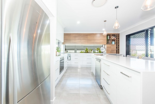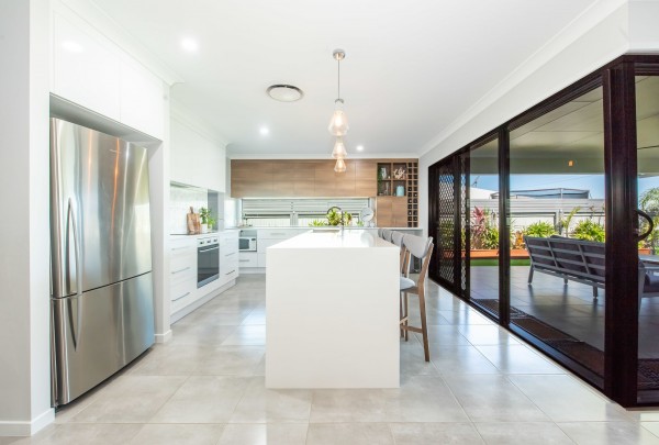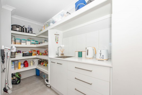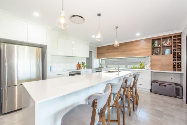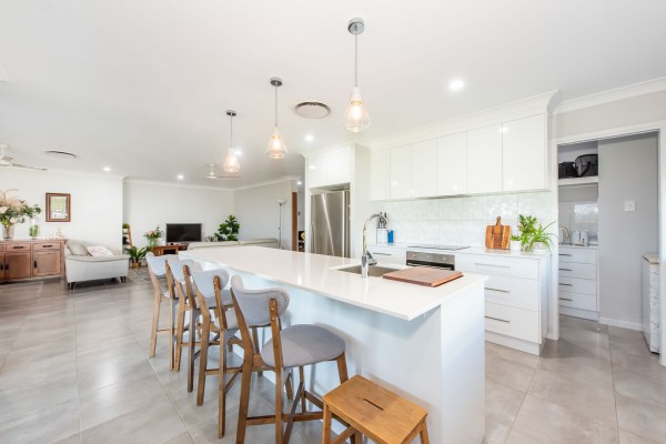 - The kitchen is filled with natural light and includes a large island bench with breakfast bar, dishwasher, plenty of cupboard space, a void for a wine fridge and a butler's pantry with oodles of bench space and a sink. The kitchen is at the centre of life in this home with easy access to the family room and out to the outdoor entertainment area