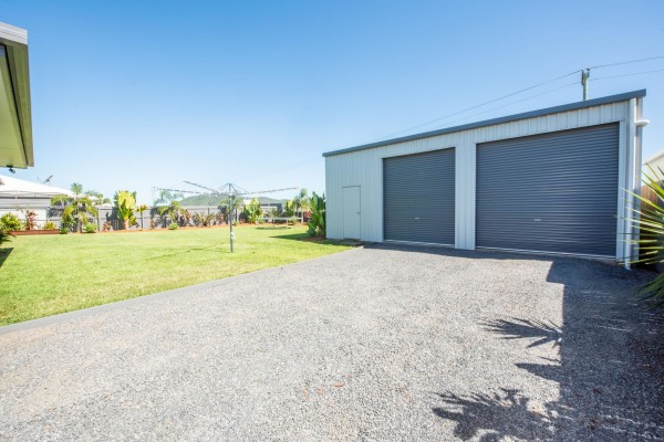 Before we look closer at the features of the house, let's look at the powered shed. It's 9mx8m, with 3.5m to the gutter and a 3.1m clearance at the door. The side access is outstanding and virtually any vehicle can get down the side of the house.