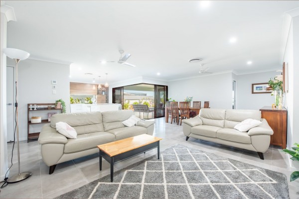 From the moment you enter the house you sense the style and space, with the tiled entrance flowing past the superb master bedroom, through the very generous open-plan family room out to the large outdoor entertainment area that looks out to the cane farm beyond.