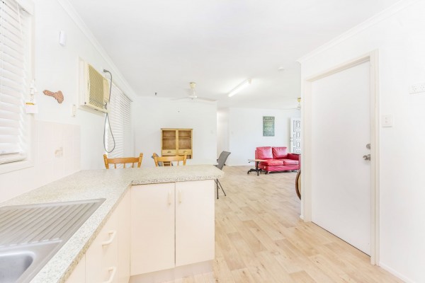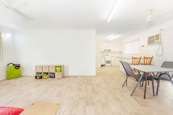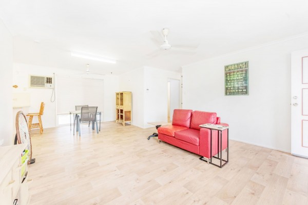 - Open plan living, kitchen and dining areas are air-conditioned and have been updated with new flooring