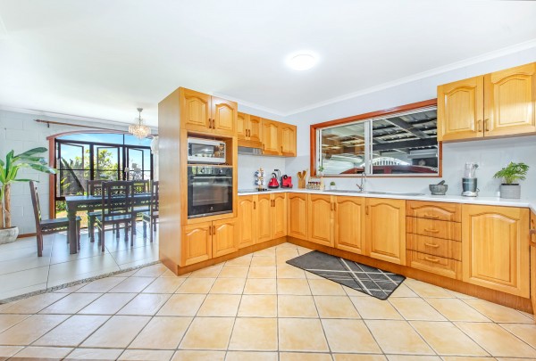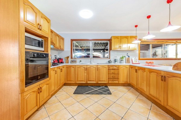 - The kitchen overlooks the open-plan casual family room and is a terrific size, with heaps of bench space and a breakfast bar