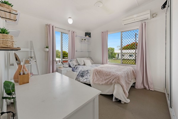 • Three bedrooms, all with fans and built-in wardrobes. Two have split-system air-conditioners