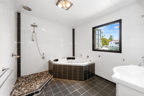 - Two bathrooms, one with a shower and separate spa-style bath and separate toilet. The second bathroom is older and has a shower, toilet and handbasin