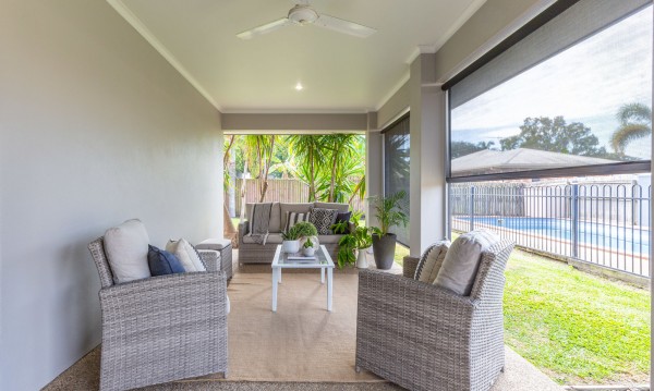Step out to the spacious, covered outdoor entertainment area that is on the eastern side of the property so it gets afternoon shade and those cooling breezes we love in summer.