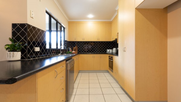 - Kitchen that overlooks the outdoor entertainment area and out to the pool and includes a breakfast bar and dishwasher