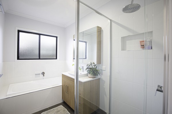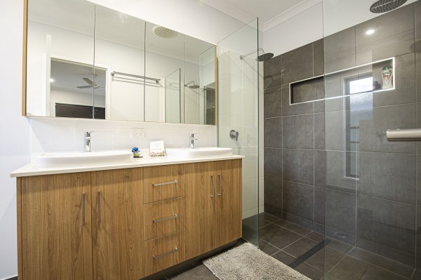 - Master bedroom with WIR and ensuite with double shower, double basin, mirrored cupboards and wall recess in shower