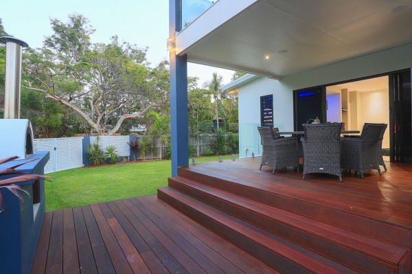 At the hub of the home is the stylish open living area with gourmet kitchen, all opening onto the upper tiled patio where one can sit back, relax and take in the glorious ocean views. The residence has been designed to cater for the largest of get-togethers, and with a choice to entertain on either level. With downstairs also well equipped to host a sizeable gathering coming complete with an internal bar area flowing out onto a spacious timber deck which features a pizza oven.