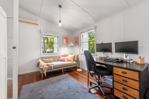 From the deck you will also notice the air-conditioned, built-in shed that is set up to be used as a home office, place for kids to enjoy themselves or a space for guests.