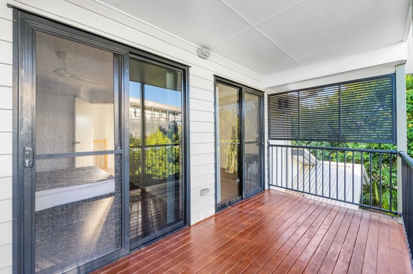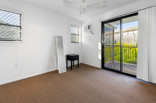 - Two spacious bedrooms, both freshly carpeted and both with built-in wardrobes, air-conditioners and sliding doors taking you out to the large deck overlooking the courtyard below