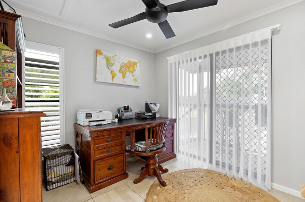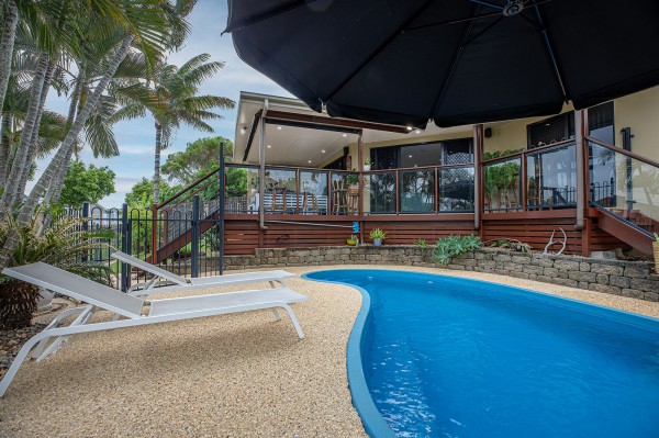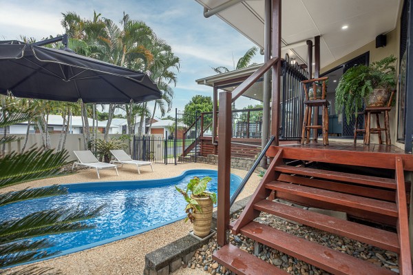 - Expansive covered deck overlooking the tropical pool-ideal for entertaining year-round