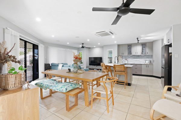 Located in a quiet cul-de-sac just 500m from the beach, this beautifully presented home delivers the relaxed, resort-style lifestyle you've been dreaming of. Elevated on a corner block to capture sea breezes, the home flows effortlessly from indoor comfort to outdoor entertaining- all framed by tropical gardens and a stunning pool.