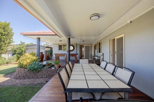 - Peaceful and spacious timber outdoor entertaining area overlooks the pool and backyard