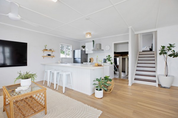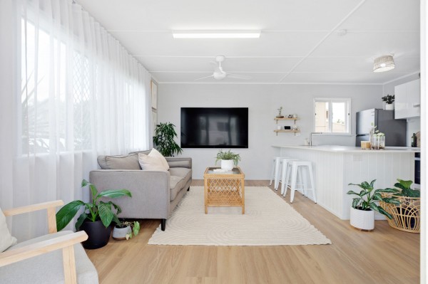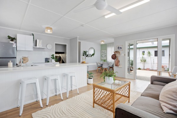 Upon entry, you'll find a bright and airy refurbished open plan living, dining, kitchen area complemented by the vinyl flooring, modern fittings and air conditioning.