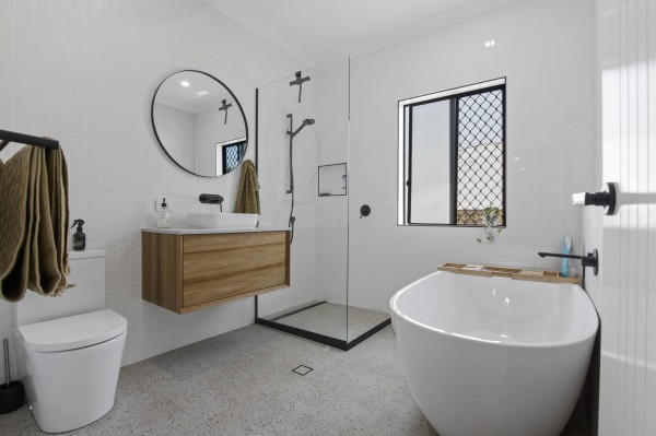 - 2 stylish bathrooms with the main featuring a modern free standing bath. Both this and the ensuite have beautiful Terrazzo tiles