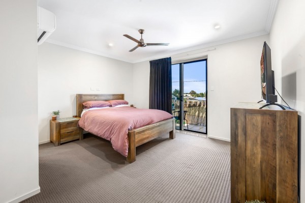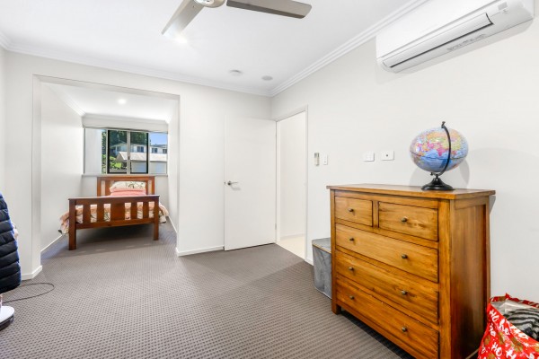 - Three large bedrooms, all with fans, split-system air-conditioners and built-in wardrobes. Main bedroom has a walk-in wardrobe and a beautifully equipped en suite. The third bedroom can be set up with its own living space in addition to the bedroom setting