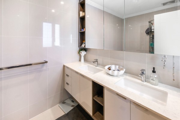 The lift takes residents from the underground carpark to this first-floor property, transporting you to a peaceful sanctuary with open-plan living, large bedrooms and a family room that flows out to the large deck.