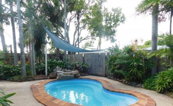 - The low-maintenance pool area is surrounded by established gardens for a tropical feel.