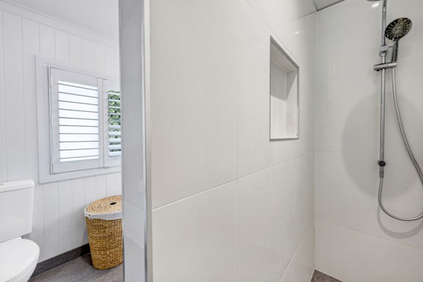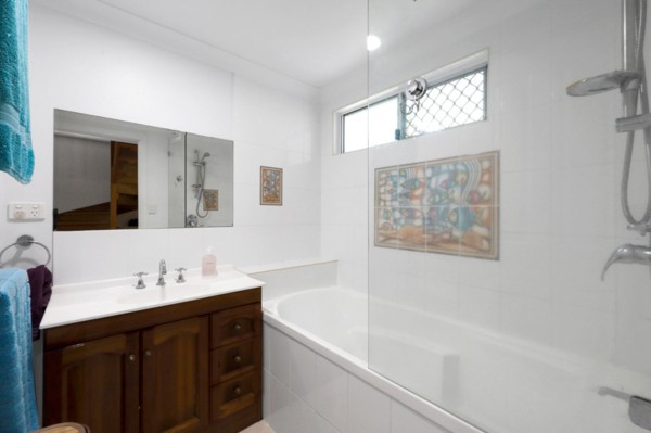 - Family bathroom with timber vanity and bath/shower combination servicing the four downstairs bedrooms