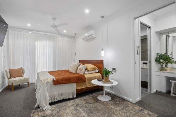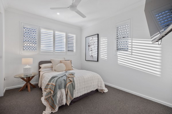 - Mitsubishi air conditioning throughout, with ceiling fans and premium Luxaflex plantation shutters and curtains