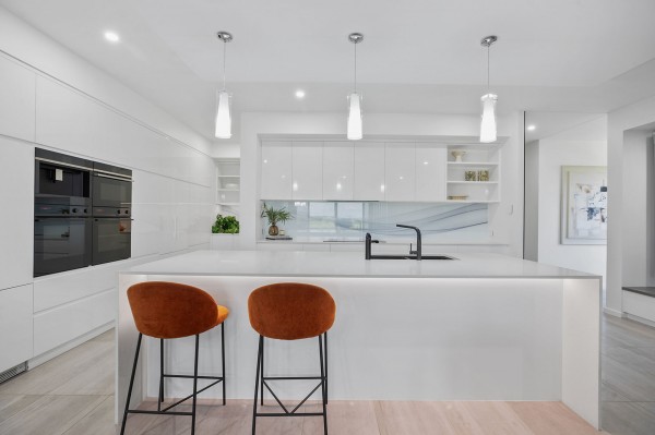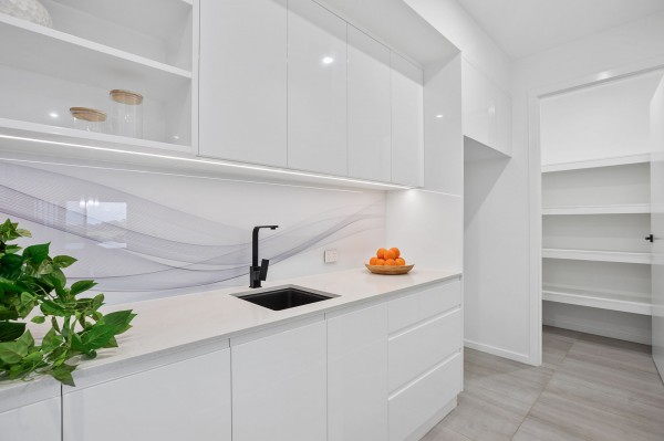 - Chef's kitchen with integrated Fisher & Paykel appliances including two fridges, dishwasher, dual ovens, built-in microwave and coffee machine, induction cooktop, stone benchtops, touch lighting, and two pantries including a walk-in and butler's pantry