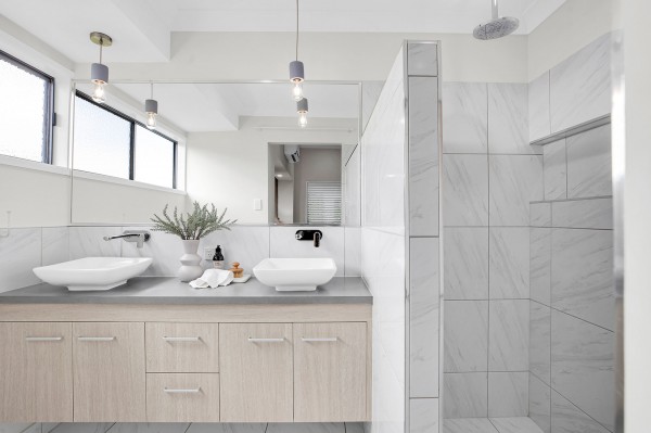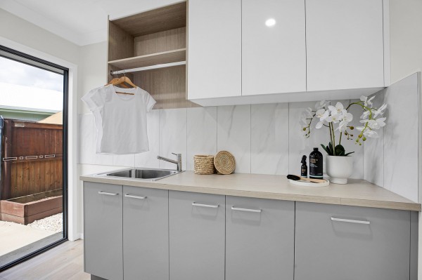 • Separate laundry with built-in washing basket, double linen press and backyard access