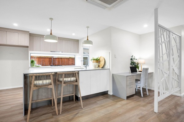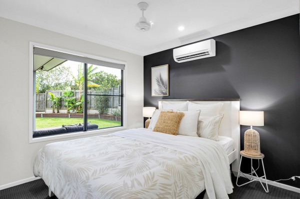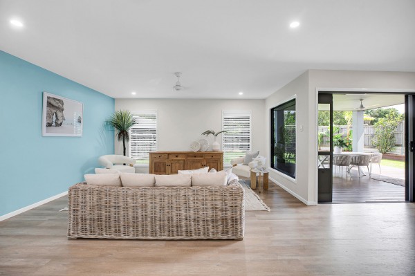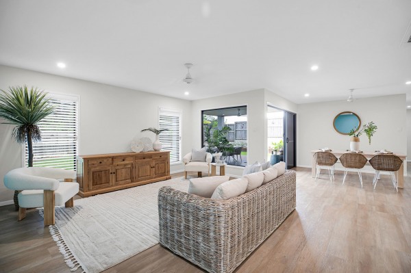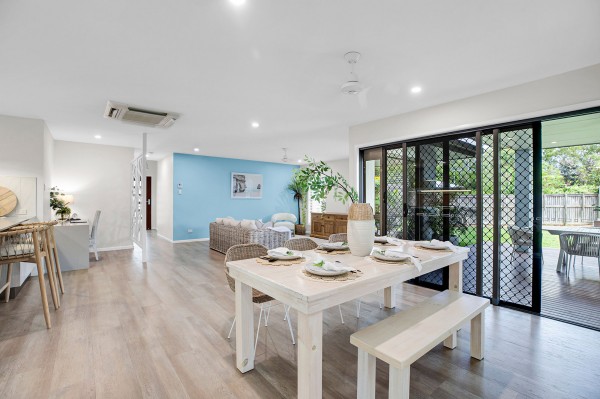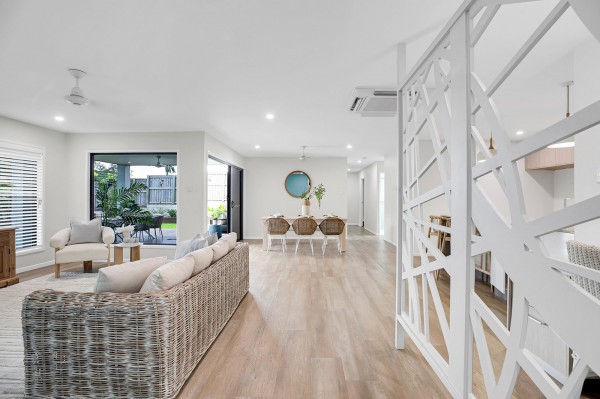• Spacious open plan living with air conditioning, ceiling fans & timber flooring