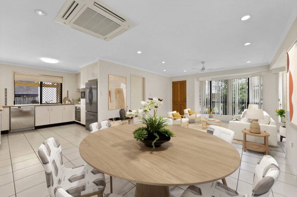 Step inside to a huge, air-conditioned open-plan living area, fully tiled for easy maintenance-perfect for hosting gatherings or enjoying relaxed family life. The well-appointed kitchen flows seamlessly into the dining and lounge spaces, while a study nook adds a practical touch for work or study needs.