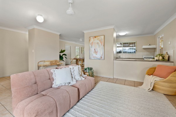 From the moment you step inside, you'll be impressed by the spacious open-plan design, where the tiled living, dining, and kitchen areas seamlessly flow together, all kept cool with air conditioning. Large windows invite natural light to fill the space, creating a warm and welcoming atmosphere.