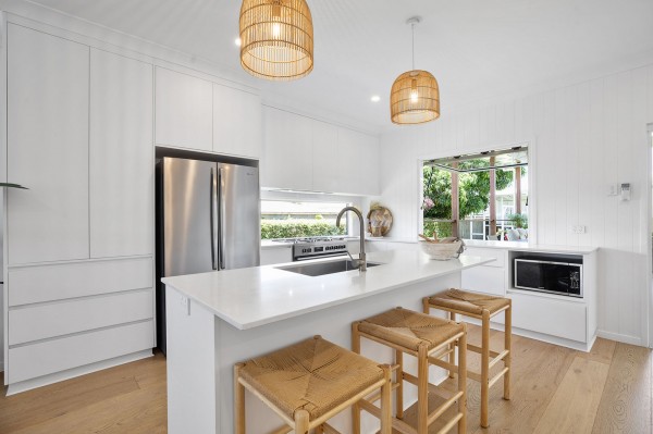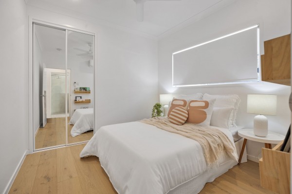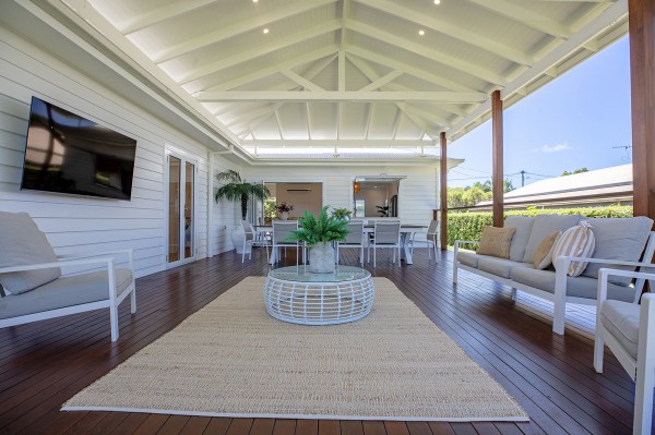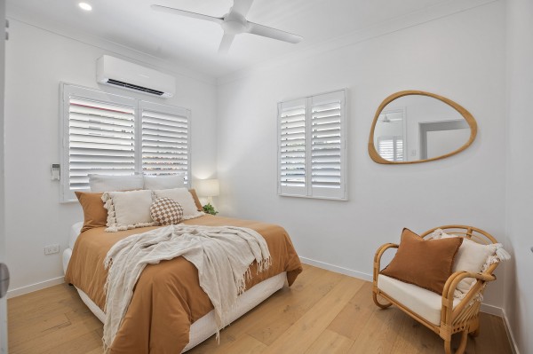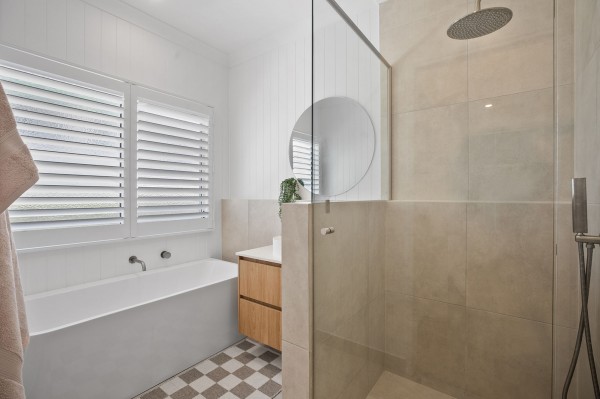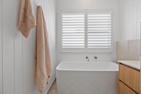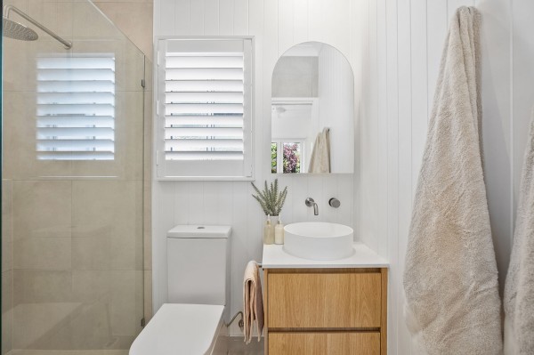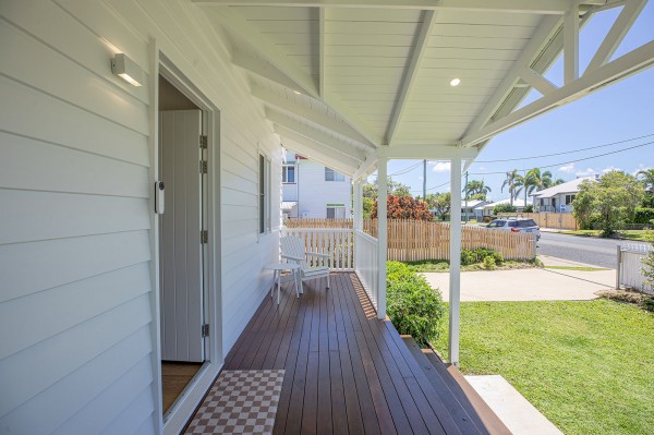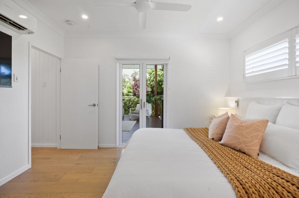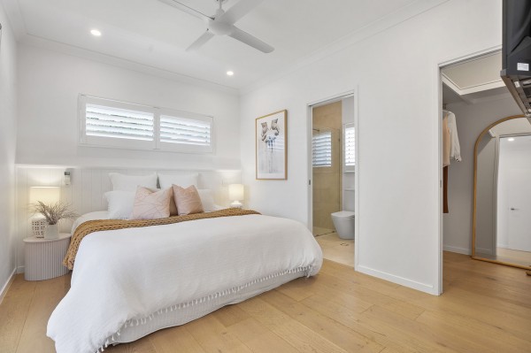 - The master bedroom is a private retreat, combining Queenslander charm with modern finishes, featuring a VJ feature wall, a stylish ensuite, walk in robe and direct access to the rear deck.